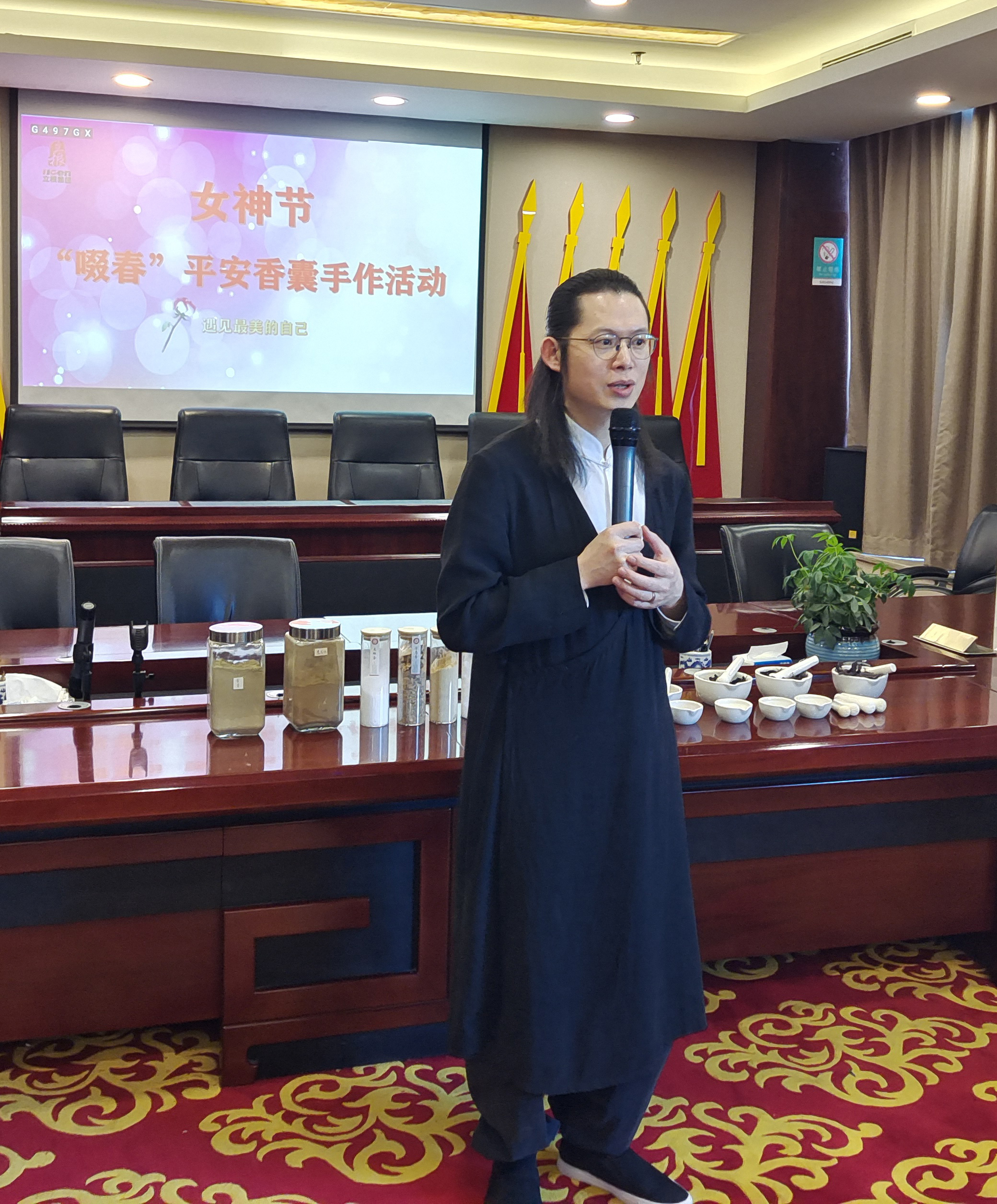 3月4日,金年会集团工会、妇委会组织全体女员工,在金年会大厦举办“啜春”平安香囊手作活动。活动邀请“传统香品制作技艺”非物质文化遗产代表性传承人、香学艺术家罗子杰为大家传授香学文化知识并指导制作香囊,全体女员工身着集团为大家准备的、花色各样的、与传统文化相适应的中式服装,在欢声笑语中以特有的方式庆祝“三八”国际妇女节的到来。